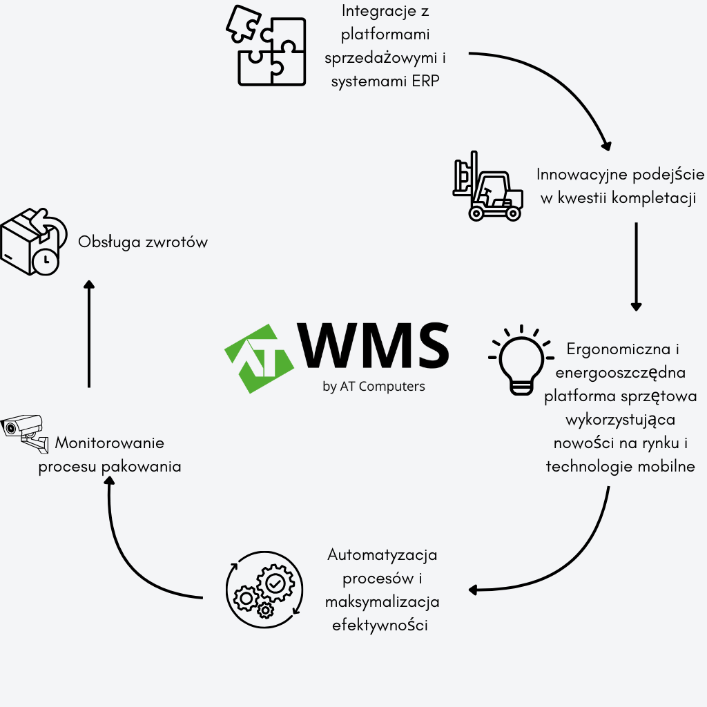 Optymalizację czasu wykonywania czynności magazynowych, takich jak pakowanie i kompletacja, co przyspiesza realizację zamówień. Eliminację błędów poprzez automatyzację procesów, zmniejsza to liczbę pomyłek w zarządzaniu zapasami i w wysyłkach. Skuteczne planowanie łańcucha dostaw, pozwala na lepsze zarządzanie zasobami i terminowość dostaw. Obsługę zwrotów, umożliwiając sprawne przyjmowanie i przetwarzanie zwróconych towarów.